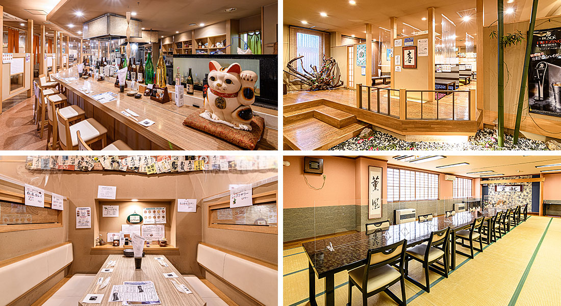 カウンター、お座敷、掘りごたつ、個室をご用意しております。